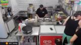 03:48:59Die Aufgaben im Team werden neu verteilt, um die Arbeitslast zu optimieren. Es wird entschieden, dass eine Person ausschliesslich für die Einlasskontrolle zuständig ist, während der Streamer die warmen Speisen zubereitet und die Kasse bedient. Die Teammitglieder werden angewiesen, stets nach Arbeit Ausschau zu halten und nicht nur untätig herumzustehen. Der Streamer gibt auch Hinweise zur Mülltrennung, um die Ordnung zu wahren.