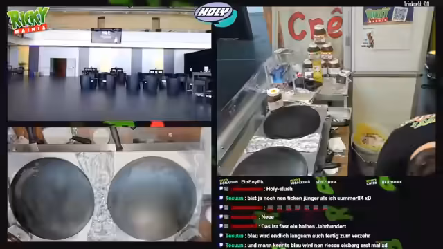 Die LAN-Party in Husum startet mit einem Verkaufsstand für Crêpes, Slush-Eis und Pommes. Eine Party ist geplant, Flyer werden verteilt, und die Stromversorgung wird optimiert. Der Streamer bereitet alles vor, inklusive der Reinigung und Organisation für die kommenden Tage. Es gibt auch Pläne für die PlayCon in Trier und möglicherweise die Gamescom.