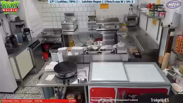 02:49:51Interaktionen mit Kunden dominieren den Stream, wobei speziell nach der Beliebtheit von bestimmten Snacks wie Naruto-Mohnchen gefragt wird. Für zukünftige Events, wie die Maxi in Erfurt, werden neue Speiseangebote wie Bratwurst und Currywurst angekündigt. Auch die Organisation der nächsten Abendveranstaltung für den kommenden Samstag wird thematisiert, bei der eine gute Wetterprognose noch abgewartet wird.
