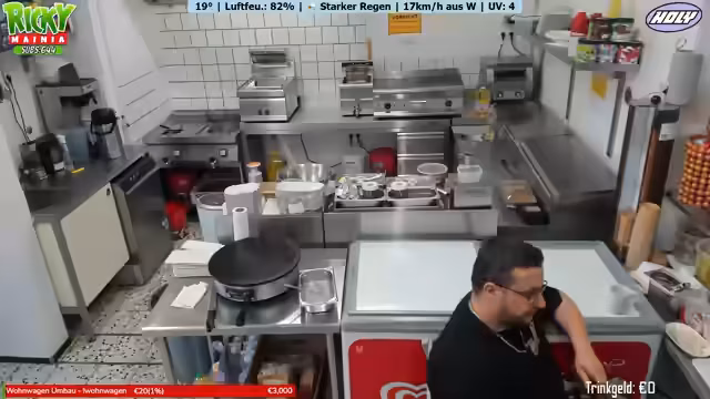 02:57:36Der Stream zeigt die schnelle Abwicklung am Imbiss, wie das Einsammeln von Sitzbezügen, um das Setzen neuer Gäste zu beschleunigen. Ein großer Schwerpunkt wird auf dem Wohnwagen gelegt, der dem Streamer Erinnerungen an seine Kindheit mit seiner Mutter weckt. Es besteht der Plan, den Wohnwagen zu restaurieren und ihn für anstehende Events, wie einen Weihnachtsmarkt, einzusetzen, was die enge emotionale Bindung unterstreicht.