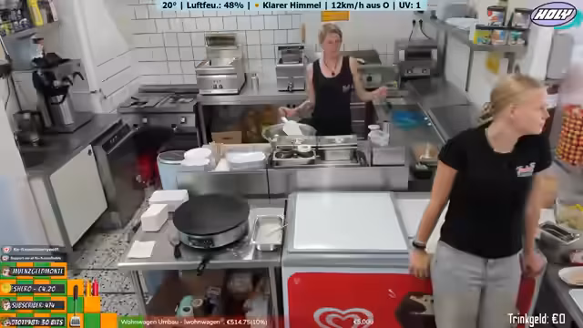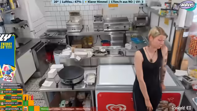 00:45:30Die Streamerin gibt einen Einblick in die Organisation des mobilen Verkaufsstands, eines Wohnwagens. Sie erwähnt anstehende Aufgaben wie das Reinigen und die Vorbereitung für den nächsten Tag, an dem wieder早早 geöffnet wird. Ein zukünftiger Höhepunkt ist ein großer Flohmarkt am 6. September in Brunsbüttel, für den sie und ihre Kollegin Sherry schon jetzt planen und Teig für Crêpes vorbereiten. Sie kündigten für dieses Datum auch einen weiteren Stream an.