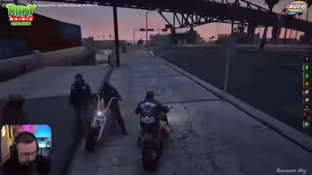 00:25:15Der Stream wird durch den Besuch der AOM (Angel of Mayhem) unterbrochen. Die Gruppe macht an ihrem Hof einen Zwischenstopp, was Kurt und Jacob auf eine unmittelbare Konfrontation einstimmt. Es geht um einen gestohlenen Stoff, den sie zurückfordern wollen. Parallel dazu werden Abschleppdienste und Reparaturen von Fahrzeugen wie der Gargoyle und einem Taxi thematisiert, was den chaotischen Alltag des LostMC-Clans widerspiegelt.