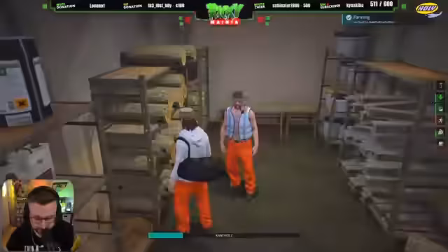 05:38:42Die Gruppe blickt auf die gesammelten Ressourcen zurück und nimmt ihre Beute auf. Dazu gehören viele Waffenteile im Wert von 400.000 Dollar und mehrere Reihen voller blauer Munition. Man beschreibt die Aktion als geisteskrank und sehr erfolgreich. Neben den Waffenteilen hat man auch diverse Chemikalien und Getränke erbeutet. Die Freude über die erfolgreiche Aktion ist groß, und es wird darüber gesprochen, wie man die Beute weiterverwerten kann. Der Fokus liegt darauf, den materiellen Gewinn aus dem Raub zu maximieren.