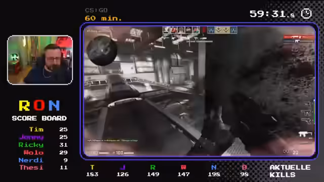 07:37:34Es gab einen Oversight im Spiel, der nie richtig behoben wurde, da unterschiedliche Internetverbindungen der Spieler eine Rolle spielten. Nach einer Spielunterbrechung aufgrund eines versehentlichen Capslock-Aktivierung, setzt sich das Spiel fort. Die Freude auf die Counter-Strike 6 Mod wird ausgedrückt, wobei Unsicherheiten bezüglich der Engine bestehen. Es wird festgestellt, dass Patrick im Spiel dreimal so gut wie andere ist, was frustrierend ist. Eine Runde wird als die schlechteste bezeichnet, und es wird scherzhaft erwähnt, die ganze Berliner Welt zu wollen. Nach einer abgecampten Aktion und einem Messerangriff werden weitere Spielszenen beschrieben, einschließlich unerwarteter Spawns und erfolgreicher Kills. Abschließend wird festgestellt, dass Benjo die Situation regelt und die Statistiken der Kartenauswahl werden betrachtet.