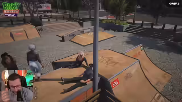 00:38:05Der Streamer fährt virtuell auf dem Jahrmarkt herum und besucht verschiedene Stände und Attraktionen, wie einen Würfel-Park, einen Skatepark und einen Essenswagen. Dabei trifft er auf wiederkehrende Charaktere wie Lisbeth, Gigi und Letty. Es werden Gespräche über die Arbeit, das Leben in der Stadt und private Geschichten geführt. Der Streamer nutzt die Gelegenheit, neue Personen kennenzulernen und die Welt des Spiels weiter zu erkunden.