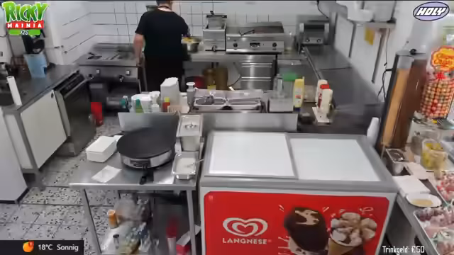 06:06:18Der Streamer zeigt, wie er mit Gästen umgeht, sowohl mit denen, die nur etwas essen wollen, als auch mit denen, die im Freibad schwimmen gehen. Dabei werden verschiedene Bestellungen entgegengenommen, von Pommes mit Mayo oder Ketchup über Eiskugeln bis hin zu Crepes. Wichtig ist dabei die saubere Küche und die korrekte Zubereitung der Speisen.