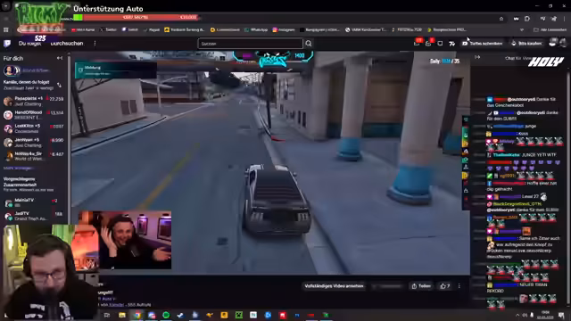 00:25:26Die Szene wechselt zu einem chaotischen GTA-Rollenspiel. Streamer und sein Mitspieler Erich sind in eine Reihe von unfreiwilligen und absurden Situationen verwickelt. Dazu gehören Auseinandersetzungen, Unfälle, Übergriffe und Konfrontationen mit der Polizei. Der Ton ist vulgär und reißerisch, geprägt von Schimpfwörtern und handlungsimprovisation. Die Szenen beinhalten fiktive Verhaftungen, Überfälle und absurde Dialoge, die das Gameplay kennzeichnen.