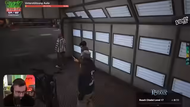 00:34:34Während des Streams wird intensiv ein Rollenspiel-Szenario gepflegt. Der Streamer nimmt virtuell Geiseln, darunter Richter, und erpresst Geld oder fordert Informationen. Er kommuniziert mit fiktiven Personen und Organisationen, darunter das 'Office of Commerce' und sucht den Kontakt zu 'Herrn Hahn', um verschiedene Forderungen zu stellen oder in interaktive Dialoge zu treten. Dies erzeugt einen ständigen Wechsel zwischen humorvoller Betrachtung und actiongeladenen Szenen.