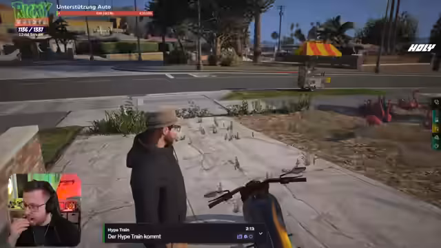 01:29:10Neben den großen Themen fließen viele alltägliche und chaotische Situationen in den Stream. Der Streamer ist oft in prekären finanziellen Notlagen im Spiel und bittet um Kleingeld, um sein Auto 'ausparken' zu können. In Rollenspiel-Szenarien führt er als Polizist Kurt Rikkelsen Ermittlungen durch, stellt Rechnungen aus und gerät in interaktive Dialoge mit anderen Spielern, oft mit absurden und komischen Ergebnissen.