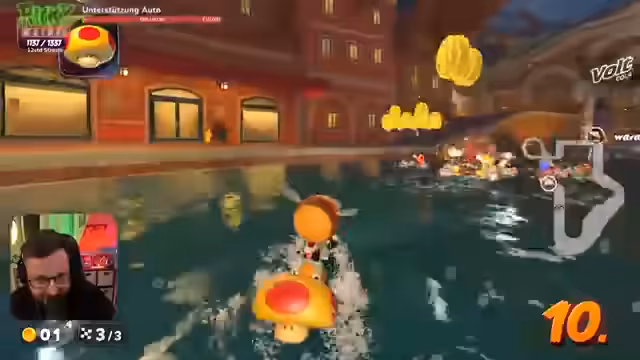 06:56:17Ein intensives Mario-Kart-Turnier im Battle-Modus beginnt. Der Streamer und sein Team haben einen schlechten Start und müssen sich fangen. Es wird über Strategien gesprochen, wie man Punkte halten kann, ohne zu gewinnen. Der Streamer kritisiert andere Teams, die unfair spielen, indem sie stehen bleiben oder Items missbrauchen, um Teammitglieder überholen zu lassen. Nach einem Disconnect eines Teammitglieds wird das Turnier fortgesetzt, und das Team ist weiterhin in der Führung.