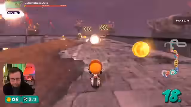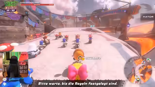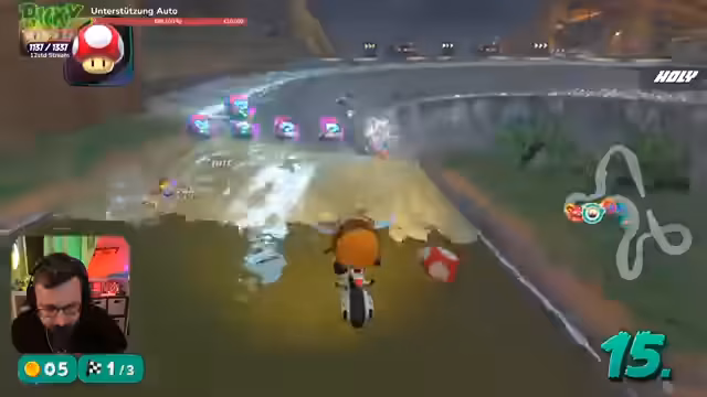 05:31:57Zu Beginn des Streams werden Rennstrategien besprochen. Der Streamer hält einen Gegenstand als Versicherung zurück und erörtert die Punktverteilung, wobei die Plätze eins und zwei signifikant mehr Punkte bringen. Der Fokus liegt darauf, die Blauen Gegenstände aus dem Spiel zu nehmen und die Strategie anzupassen, um vorn zu bleiben und nicht überholt zu werden. Dabei wird die Positionierung kritisch bewertet, um den Vorsprung nicht zu verlieren.