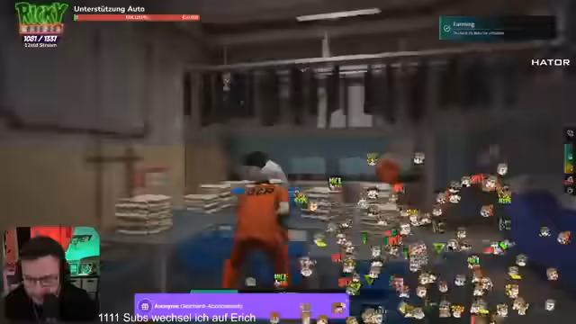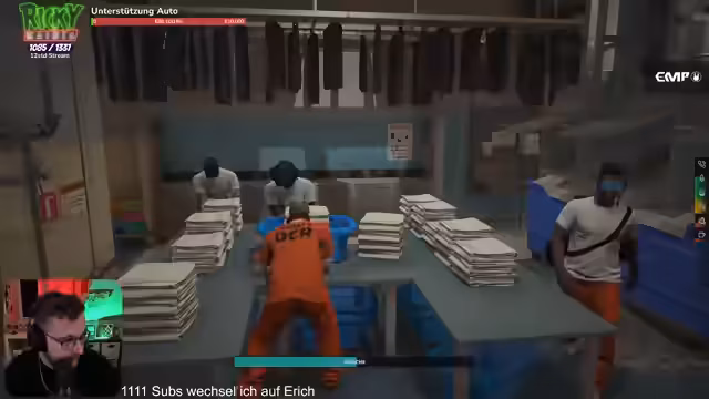 01:48:23Ein wiederkehrendes Thema ist der Wunsch, mit dem Anrufen von Haftantrittsterminen aufzuhören, um keine Nummer zu bekommen. Es werden unzählige Male kreative Ausdrücke wie 'Telefonmann' verwendet, um das Telefonieren darzustellen. Der Streamer imaginiert diverse Szenarien im Gefängnis, darunter gemeinsames Waschen, Verhandlungen unter Waffengewalt und die Information über bevorstehenden Besuch, die oft zu spät und chaotisch ankommt. Bei einem anderen Gesprächspartner namens Kurt geht es um einen vermeintlichen Restart im vierzehnten Monat, was zu Verwirrung führt. Zudem wird ein drohender, riesiger Gefängnisbrand als Metapher für die eskalierende Situation beschrieben.