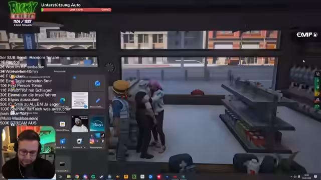 01:24:54Die Beteiligung der Community nimmt zu, indem höhere Spendenbeträge für extreme Aktionen wie das Ausrauben von Geschäften oder das Auslösen von Verfolgungsjagden mit der Polizei gefordert werden. Der Streamer agiert zunehmend reaktionär und ist mit der Situation überfordert, da er ständig neue Timer setzt und auf mehrere Anfragen gleichzeitig reagieren muss. Die Stimmung im Chat ist euphorisch und fordert immer skandalösere Aktionen.