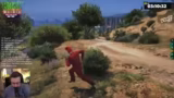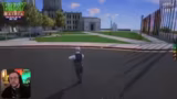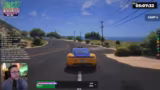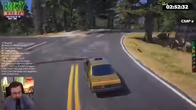 01:16:29Während der Fahrt mit dem neuen Sammeltaxi kommt es zu einem schweren Unfall auf der Zenora Road. Das Auto, das erst gestern geschenkt bekommen wurde, stürzt einen Abhang hinunter und wird stark beschädigt. Es fehlen Reifen, der Unterboden und die Türen. Der Streamer muss einen Abschlepper rufen, um das Wrack bergen zu lassen, und die Situation wird humorvoll als Folge des angeblichen Fluchs des Autos kommentiert.
