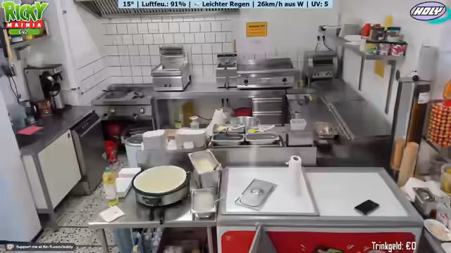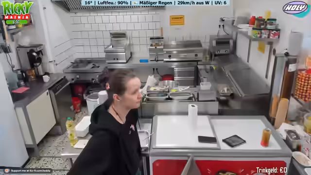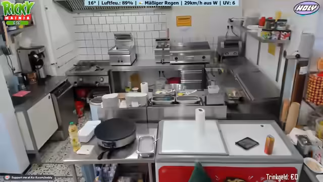 00:00:00Der Stream beginnt mit technischen Schwierigkeiten und einer beeinträchtigten Stimme. Der Streamer berichtet von anhaltend schlechtem Wetter, das den Betrieb des Freibad-Imbisses stark beeinträchtigt. Die ganze Woche soll es regnen, was zu geringem Umsatz und Langeweile führt. Er erwähnt, dass der Kassenbetrieb für Twitch und den Imbiss zwar getrennt ist, aber trotzdem zusammenhängt.