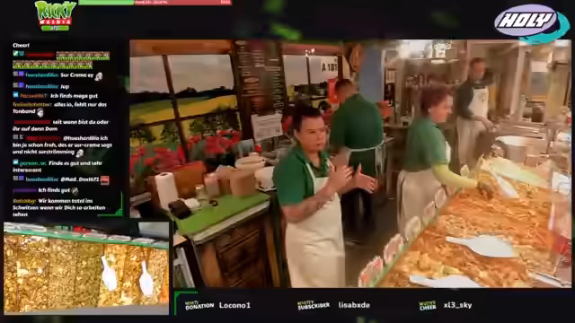 07:50:47Im Chat wird der Stand humorvoll als 'Gemüseclan' bezeichnet, der Streamer selbst nennt sich selbstbewusst 'Gemüsepapst'. Dieser Titel bezieht sich auf sein Engagement und seine Leidenschaft für das Angebot, die er mit seinem Schwiegervater teilt. Die Betreiber des Standes, eine Familie, sind seit vielen Jahren im Schaustellergewerbe tätig und haben den Imbiss als Familienbetrieb etabliert. Die Zusammenarbeit mit Ricky, einem Freund der Familie, wird als besonders harmonisch und erfolgreich beschrieben, was den Arbeitsalltag positiv prägt.