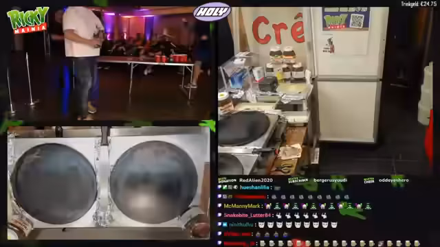 07:11:44Der Stand wird weiter betrieben und Crêpes sowie Slushies werden verkauft. Die Teilnehmer sollen die später folgende Party um 0 Uhr besuchen. Für die Party wird Slush mit Alkohol vorbereitet. Es gibt Catering direkt von der Messe und Ricky gibt Einblicke in die Abläufe und Umsätze. Auch die Notwendigkeit von Unterstützung wird angesprochen.