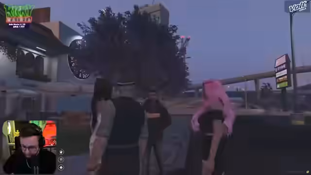 03:05:32Ein weiterer Besucher, Will, stößt zur Gruppe und stellt sich vor. Es gibt eine Diskussion über eine bevorstehende Party und wer teilnehmen wird. Elaine plant, nach Sandy Shores zu fahren, um ein Tattoo zu machen und sich passende Kleidung für die Party zu besorgen. Gleichzeitig gibt es Verwirrung über die Anwesenheit und die Route anderer Personen, wie Basti und die andere Zoe. Der Streamer muss kurz jemanden zurückrufen, da es Verständigungsschwierigkeiten gibt.