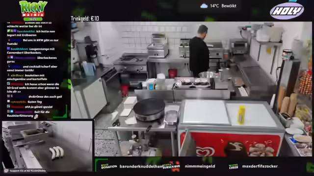 03:13:11Die Funktionstüchtigkeit der Slush-Maschine wird nach einer halben Stunde überprüft, um den dauerhaften Erfolg der Reparatur zu bestätigen. Zudem wird das bevorstehende Wochenende angesprochen, an dem wärmeres Wetter erwartet wird, was für den Betrieb des Imbisses wichtig ist. Der Streamer berichtet zudem von seinem Kaffeekonsum und dem Ziel, die bestehenden Ressourcen zu nutzen.