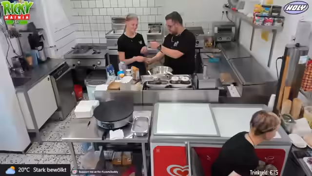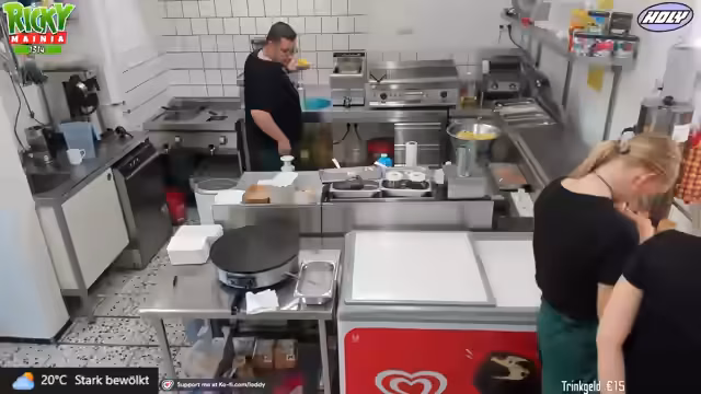 08:25:20Aufgrund einer akuten Erkrankung der Mitarbeiterin Sherry muss sie ihren Dienst vorzeitig abbrechen und kann heute nur wenig leisten. Ihre Tochter Kira, genannt 'Mini-Cherry', springt spontan ein, um die Mutter zu unterstützen. Eine weitere Person verlässt den Stream ebenfalls, da sie einen Geburtstag feiern muss. Dies erfordert eine Umstellung der Abläufe und eine schnellere Einarbeitung des neuen Mitarbeiters in den Küchen- und Kassendienst.