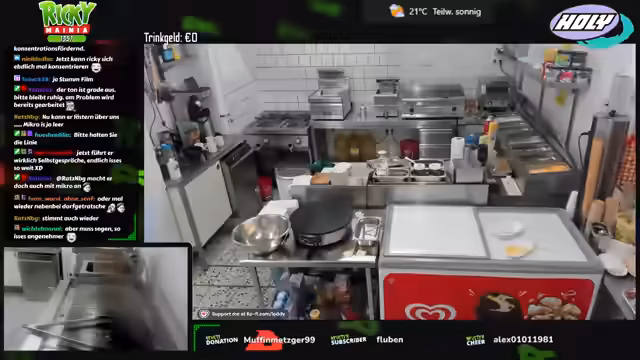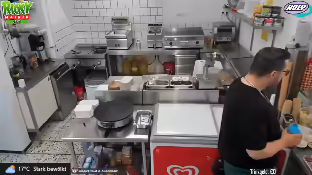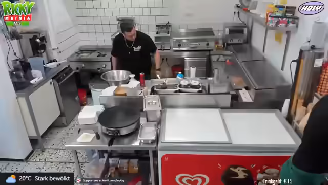 02:38:02Der Stream startet mit dem laufenden Betrieb des Freibad-Imbisses. Der Fokus liegt auf der schnellen und effizienten Abwicklung von Bestellungen, insbesondere für Crêpes und andere Snacks. Der Streamer beschreibt das System, bei dem er Kunden aufruft und Bestellungen direkt mit Nummern vergibt, um einen reibungslosen Ablauf zu gewährleisten. Es herrscht ein reger Andrang, bei dem er parallel mehrere Bestellungen entgegennimmt und zubereitet. Auch das Problem von überproduzierten Pommes angesichts einer unerwartet niedrigen Nachfrage wird angesprochen, was zu einer improvisierten Aktion für die Chat-Community führt.