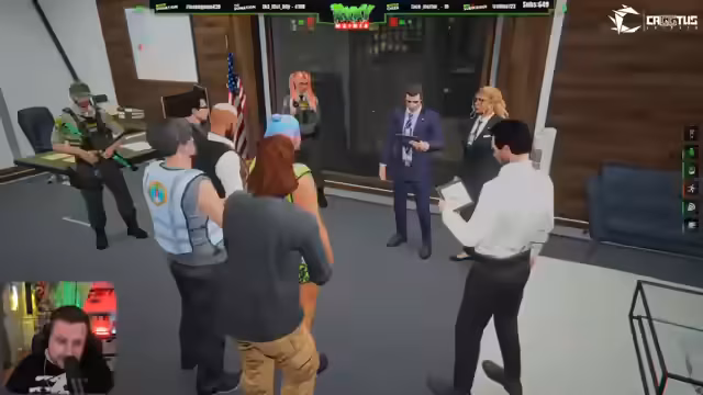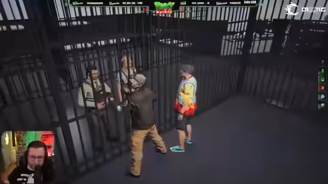 00:59:39Nach der Festnahme durch die Polizei wird der Streamer und seine Begleiter verhört. Die Situation heizt sich auf, als die Polizisten die Gruppe durchsuchen und Waffen beschlagnahmen. Im Verhör gibt der Streamer seine Identität an und weist den Vorwurf der Geiselnahme zurück, da er keine Forderung gestellt habe. Er betont, er habe die Person nur für das Kartfahren benötigt. Die Polizisten halten dies jedoch nicht für glaubwürdig und verdächtigen die Gruppe schwerer Vergehen. Das Verhör wird unterbrochen, als ein weiterer Häftling über die Gruppe spricht und anklagt.