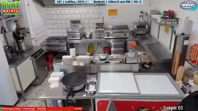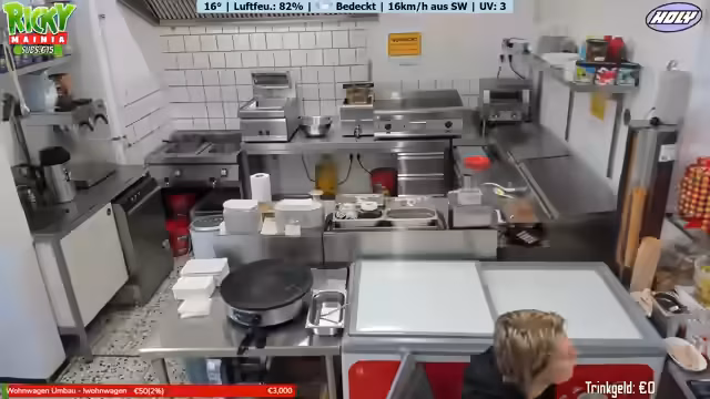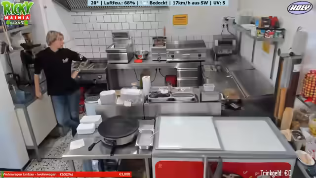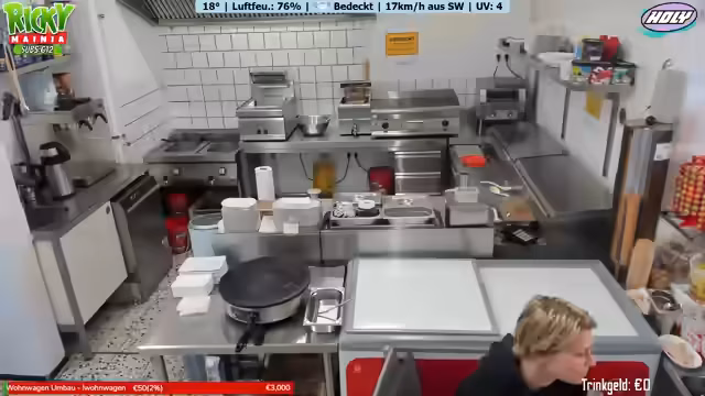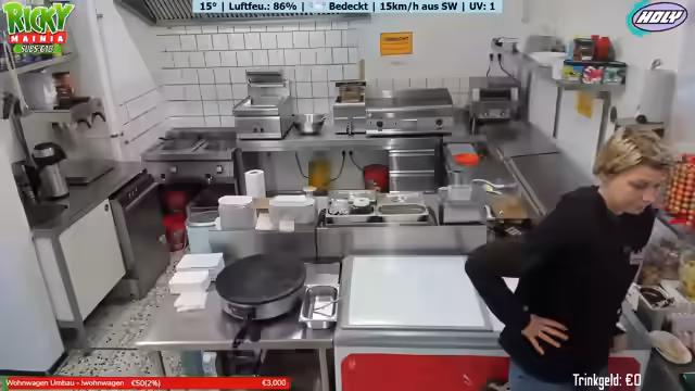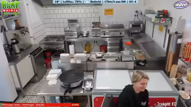 03:04:50Der Fokus verschiebt sich zur Interaktion mit den Zuschauern, die ihre Bestellungen aufgeben. Die Streamerin liest im Chat die Bestellungen vor, wie Crepes, Nuggets mit Pommes und diverse Getränke, und wiederholt die Preise klar und deutlich. Dies gibt dem Zuschauereinblick in den Ablauf und die Vielfalt des Angebots des Imbisses.
