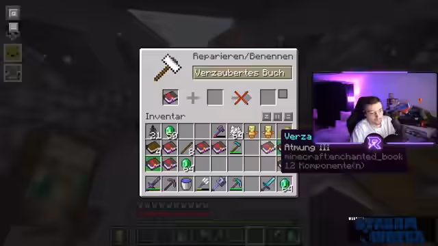 06:53:24Die Gruppe diskutiert Enchanting-Strategien und erwähnt ein 'Geschenk vom Kaiserreich' für die Türken um 19 Uhr. Es gibt Spekulationen über dessen Natur – ob ein Weihnachtsgeschenk oder ein trojanisches Pferd. Parallel wird Danny mit voller Rüstung erwartet, und Matze bereitet Enchantments über eine Trading Hall vor, während er Bedenken wegen fehlender Haltbarkeit auf Spitzhacken äußert.