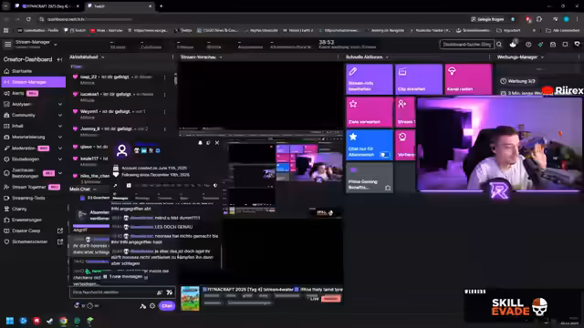 04:46:14Der Streamer berichtet von einem chaotischen Szenario, bei dem mehrere Basen gesprengt wurden, darunter die von Schradin, der kurz zuvor eine Rüstung für 150 Subs erworben hatte und diese sofort verlor. Dies löste eine Welle von Vergeltungsaktionen und verbalen Konflikten aus, inklusive Drohungen und weiteren Zerstörungen. Es entstand eine Auseinandersetzung mit Spieler Neusy, die in einer wechselseitigen Sprengung gipfelte, wobei der Chat als Mittler und Verstärker der Konflikte diente. Die Ereignisse wurden als „Enkeltrick“ und „Atombombe“ bezeichnet und führten zu einer angespannten, aber unterhaltsamen Atmosphäre auf dem Server.