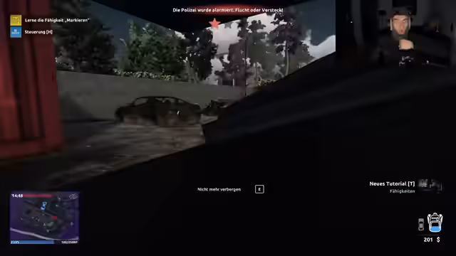 00:16:01Der Streamer versucht, seine erste Mission fortzusetzen, stößt aber auf erhebliche Schwierigkeiten. Er weiß nicht, wie er eine weitere benötigte Mikrokamera verwenden kann und versteht die Spielmechanik nicht. Er stirbt versehentlich bei einem Einbruchversuch, da er von der Polizei angeschossen wird. Er findet keine Erklärung im Spiel für die Aufgaben, wie das Platzieren der Kameras oder Erlernen von Fähigkeiten, und äußert zunehmende Verwirrung und Frustration über das Spiel, das er als buggy und unlogisch beschreibt.