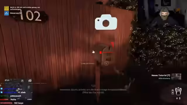 00:06:35Nach kurzer Vorbereitung startet der Streamer das Spiel. Zu Beginn ist er unsicher und verwirrt über die Steuerung und die ersten Schritte. Nach einem anfänglichen Fehler flieht er erfolgreich aus seinem Apartment mit einem Auto. Er hat seine erste Mission, in Haus 1.02 einzubrechen, und platziert eine Mikrokamera im Briefkasten, um herauszufinden, wann die Mieter das Haus verlassen. Anschließend verkauft er erste gestohlene Gegenstände wie eine Uhr und eine Pfanne in seinem Laden.