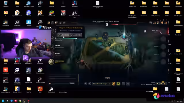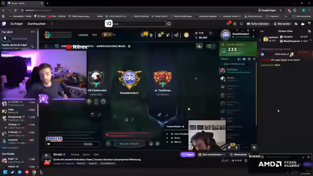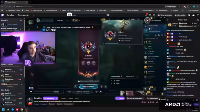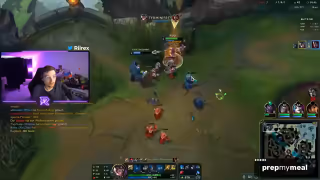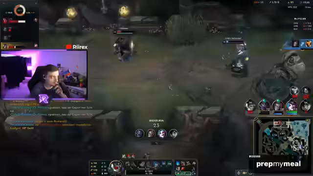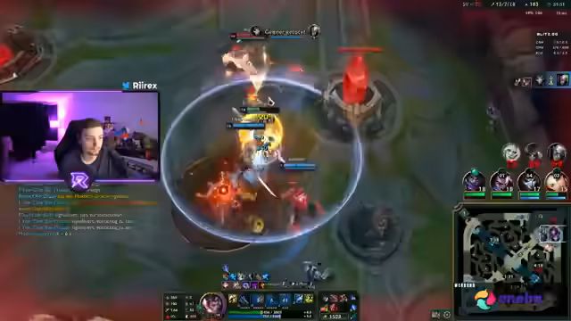 01:01:26Es gibt eine kurze Unterhaltung über die Zugehörigkeit zu einer Gilde namens 'Second Wave' und die Rolle eines Spielers namens 'Brücki' als Pro-Spieler für Eintracht Spandau. 'Brücki' äußert sich enttäuscht über die aktuelle Saisonleistung seines Teams, das den zehnten Platz von zehn belegt hat. Der Streamer teilt eine amüsante Anekdote über 'Brückis' Spielweise. Im Spiel selbst wird über die Effektivität von Gacha-Skins diskutiert und ein Spieler namens 'Ryrex' zeigt seinen Skin. Es werden Strategien für das Clearing von Camps und das Platzieren von Wards besprochen, um die Sicht auf den Gegner zu verbessern und Überraschungsangriffe zu verhindern. Es wird auch über die Schwierigkeiten gesprochen, gegen bestimmte Champions im Early Game zu bestehen und die Wichtigkeit von Flash-Positionierung (D oder F) wird kurz angesprochen.