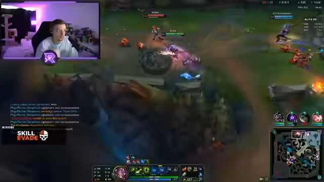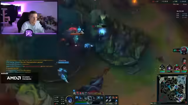 00:17:22Das erste Spiel beginnt mit einem Toplaner, der als trollhaft beschrieben wird. Der Streamer hat eine schwierige Anfangsphase gegen einen Jax und verliert die ersten Minions und Experience. Nach einem frühen Teamfight, der schlecht verläuft, steht es bereits 0-8. Der Streamer ist frustriert über das spielerische Niveau seiner Mitspieler und das verlorene Early Game.