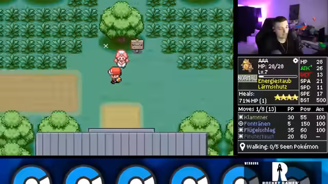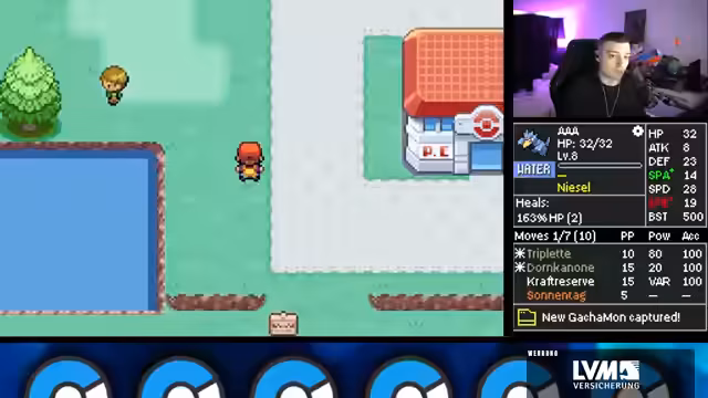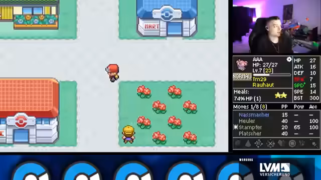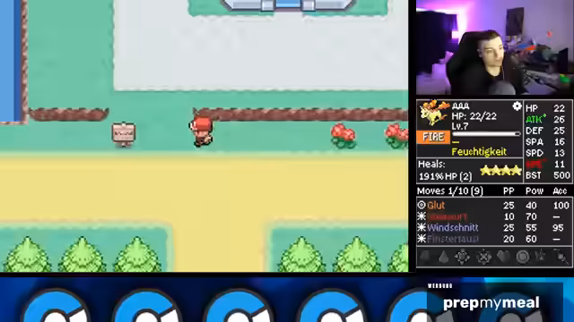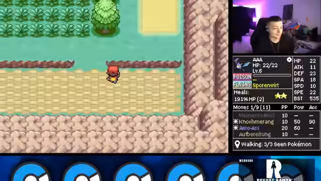 00:16:18Der Streamer geht detailliert auf die komplexen Regeln der Iron Mon Kaizo-Challenge ein. Dazu gehört, dass man nur mit einem Pokémon spielt, welches zufällige Stats und Attacken erhält. Man darf ausschließlich durch Trainerkämpfe leveln und muss den ersten Arenaleiter besiegen, um einen Run offiziell zu starten. Jedes Pokémon über einem BST-Cap von 599 ist verboten. Dieses Regelwerk macht den Run extrem zufallsabhängig und herausfordernd.