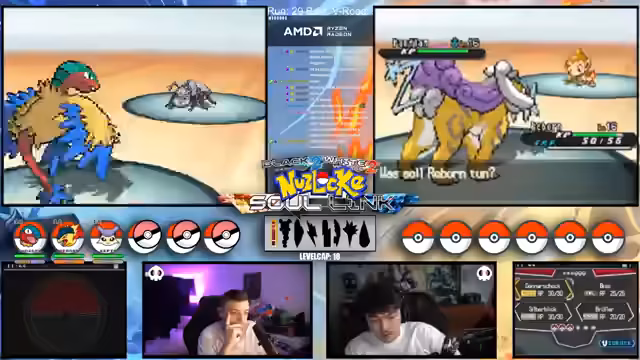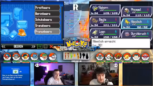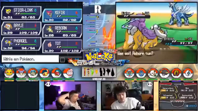 04:40:43Der Streamer startet in die Soullink Challenge und plant für den weiteren Verlauf des Streams alle Aufgaben auf Montag zu verschieben. Er erwähnt einen Bug beim Benennen von Pokémon, das Wort "DS" ist auf einer Blacklist, was technische Probleme verhindern soll. Die initialen Teamzusammenstellungen der Teilnehmer vorgel, Bail, Reborn, Löhn und Durchbruch festgelegt und es geht los in den Kämpfen.