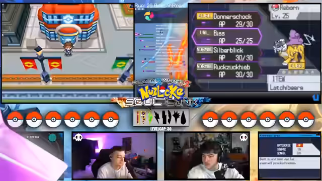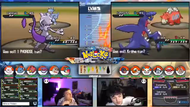 Es wurde eine Runde der Pokémon-Schwarz 2 Challenge absolviert, in der die drei Kontrahenten ihre Teams aufeinandertrafen. Der Fokus lag auf strategischen Entscheidungen, Team-Building und dem Umgang mit unvorhersehbaren Spielsituationen. Durchdachte Züge und die Auswahl starker Pokémon waren für den Erfolg entscheidend.