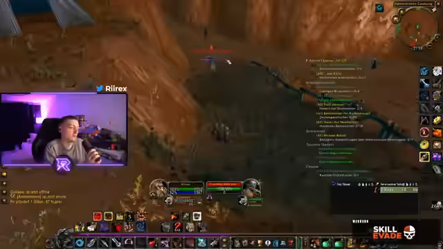 05:01:47Der Stream konzentriert sich intensiv auf das Gameplay von World of Warcraft Classic. Es wird die Zeit in der Welt Schlingelontal verbracht, um dort diverse Quests abzuschließen und Monster zu besiegen. Dabei wird die Zusammenarbeit in einer zweiköpfigen Gruppe betont, die sich gegenseitig im Kampf unterstützt. Der Fokus liegt darauf, Questreihen systematisch abzuarbeiten und Erfahrungspunkte zu farmen. Der Streamer führt seinen Hunter durch verschiedene Gebiete wie die Marschwood und arbeitet sich zu den Elite-Questen vor, die deutlich mehr Erfahrung bringen.