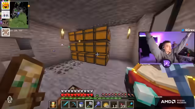 05:37:14Nach intensiver Suche wird die erste Bastion gefunden. Der Kampf gegen den Wächter mit der goldenen Axt ist erfolgreich und das ersehnte Schmiedetemplate ist gesichert. Es werden sofort erste Pläne für den nächsten Schritt geschmiedet. Das Hauptziel ist nun, eine Enderchest zu bauen, um wertvolle Gegenstände sicher zu verwahren und den vollen Farmmodus anschließend zu starten.