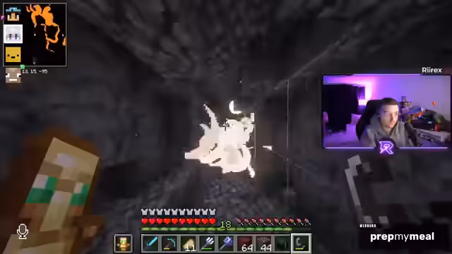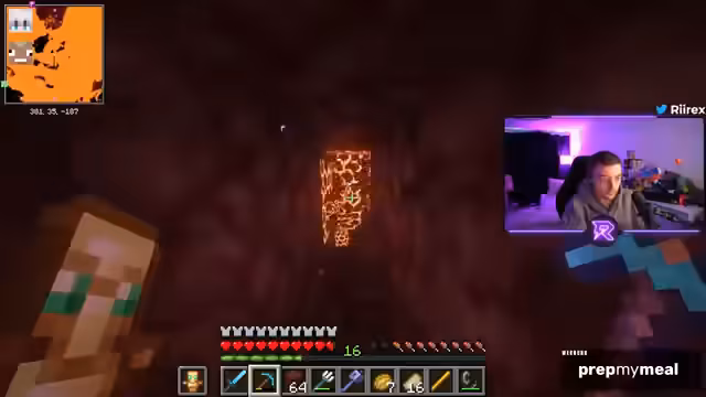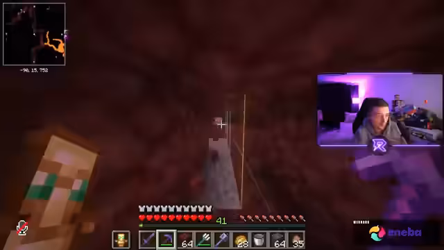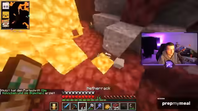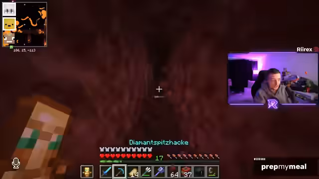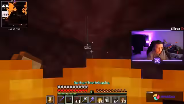 12:02:02Die Stimmung kippt, als die Suche nach Netherite sehr langsam und ergebnislos verläuft. Nach einer langen Zeit ohne Funde wächst die Frustration, die durch technische Probleme wie laute Mobsounds verschärft wird. Der Streamer äußert die Befürchtung, der Tag sei 'nicht mehr witzig'. Eine leichte Erleichterung setzt erst ein, als endlich die ersten Netherite-Ader gefunden werden.