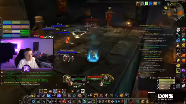 03:48:34Nach einem turbulenten Bossfight, bei dem es anscheinend Probleme mit der Aggro-Generierung gab, wird der Boss mit Unterstützung von Dalu und Rirex erfolgreich besiegt. Der Streamer lobt diese beiden Spieler ausdrücklich, da sie die einzigen waren, die die Aufmerksamkeit des Bosses auf sich gezogen hatten, während andere Magier kaum Schaden anrichteten. Er äußert seine Freude darüber, dass alle überlebt haben und betont die positive und wilde Erfahrung des Moments.