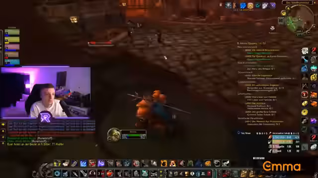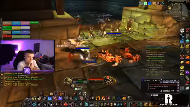 08:31:29Der Streamer erkundet den Dungeon Dunkelruhn und kommentiert die Bosskämpfe. Er konzentriert sich auf die Mechanik des ersten Bosses, Dark Rump, und gibt Anweisungen zur Aggroverteilung und zum Mana-Management bei der AOE-Gruppenfähigkeit. Er erwähnt, dass einige Zwischenbosse sehr gute Drops wie einen starken Bogen für Level 53 droppen können. Es kommt zu einigen Drops wie der Priesterkrone und die Schurkenarmschienen, welche das Team freut. Der Streamer stellt die Frage nach dem Loot und der Spielerrolle im Team und fragt, wie die anderen Mitspieler weiter vorgehen möchten. Die Läuterung der Boss-Items wird diskutiert.