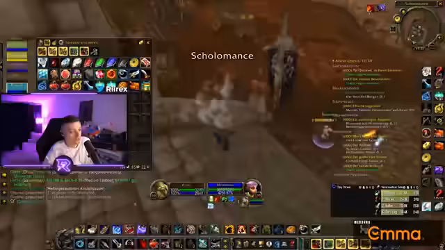 09:24:53Der Streamer kehrt zum Spiel zurück und leitet das Team in die Endphase des Upper Blackrock Spire (UBRS). Der Fokus liegt auf dem Endboss Rammstein, dessen Fähigkeiten wie Knockback, Mortal Strike und Shadow-Arrow erklärt werden. Der Streamer gibt detaillierte Anweisungen für die Tanks und Heiler zur Schadensvermeidung und zur Sicherstellung der Party, speziell mit dem Lock im Fokus. Es ist ein Timed Run im Gange, dessen Erfolg mit dem Erhalt von speziell aussehenden Ausrüstungsgegenständen und dem T3-Set verbunden ist. Trotz Stress und knapper Zeit wird der Run erfolgreich abgeschlossen und die erhaltenen Items wie die Tunika und der Cape werden bewundert.