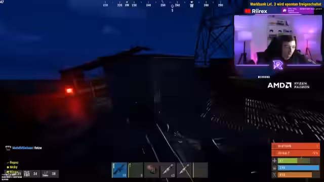04:23:55Im Stream wird intensiv über die Verarbeitung von Ressourcen wie Holz in Crude Oil gesprochen, um anschließend weiterverarbeitbare Materialien herzustellen. Dabei kommt es zu kritischen Momenten, bei denen wichtige Ausrüstung wie ein Rucksack fehlt, was die Fortbewegung und den Transport erheblich erschwert. Eine gefährliche Situation entsteht, als Patrol-Helikopter als Bedrohung wahrgenommen werden, und eine Diskussion über die Einladung von Spielern in einen neuen Clan beginnt.