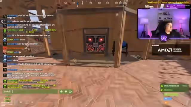 01:46:34Es wird ein koordinierter Raid auf das Frachtschiff Cargo geplant. Der Streamer und sein Team bereiten sich vor, sammeln notwendige Ressourcen wie Spritzen und Low Grade Fuel und koordinieren ihre Aktionen über den Voice-Chat. Der Chat wird aktiv genutzt, um Positionen auszutauschen und Strategien zu besprechen. Die Mission ist riskant, da ein rivalisierendes Team und ein Patrouillen-Helikopter erwartet werden.