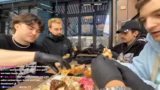02:43:47Das Stream-Team erreicht seinen vorletzten Stop, das als stark unterschätzt geltende Nas Chicken in Berlin. Trotz eines vollen Magens wird eine gemeinsame Bestellung aufgegeben, die sich aus einer halben Hähnchen-Spezial, Knoblauch-Parmesan-Pommes, Chicken Bites, arabischem Brot und hausgemachter Knoblauchsauce zusammensetzt. Die Bestellung wird geteilt, damit jeder Teilnehmer probieren kann. Während des Wartens werden kleine Zwischenfälle wie der verlorene Magneten an einem Gurt erwähnt und gelöst, was für eine lockere Gesprächsatmosphäre sorgt.