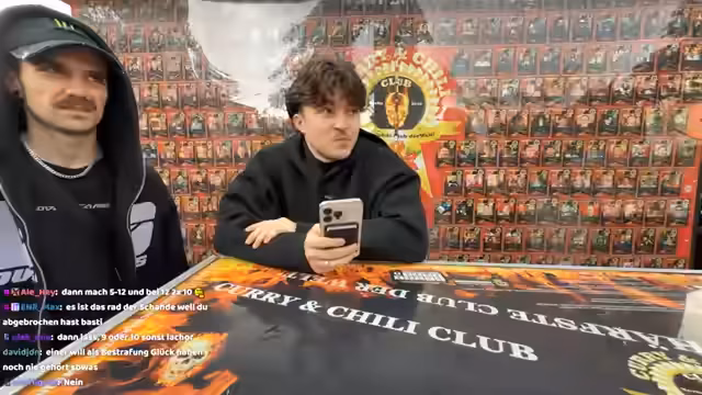 00:07:39Das Highlight des Streams ist die geplante Challenge bei Curry & Chili, bei der Basti die schärfste Currywurst Deutschlands probieren muss. Es findet eine intensive Diskussion über die genaue Ausführung statt. Um Risiken zu minimieren, einigt man sich auf eine Stufe 5-9 und die Verpflichtung, nur drei Stücke der Wurst zu essen. Zudem wird die Notwendigkeit von milchhaltigen Getränken als Gegenmittel besprochen.
