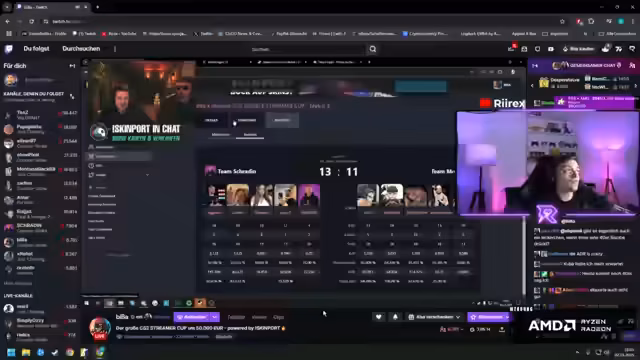 07:10:31Nach einem kurzen Unterhaltungstrail setzt das Turnier mit dem Team Schradin fort. Es gibt Kooperationen und Teamwechsel, wobei ein Streamer kurzzeitig wegen gesundheitlicher Probleme, darunter Migräne und Übelkeit, den Stream unterbrechen muss. Die Matches sind eng und ausgeglichen, was zu hoher Anspannung und aufwühlenden Momenten führt, insbesondere als eine Runde durch einen Teamkill verloren geht. Teams ohne Pixel und Jamel werden als stark und mit hohem Energy Level beschrieben, und es wird über die Balance der Teams diskutiert.
