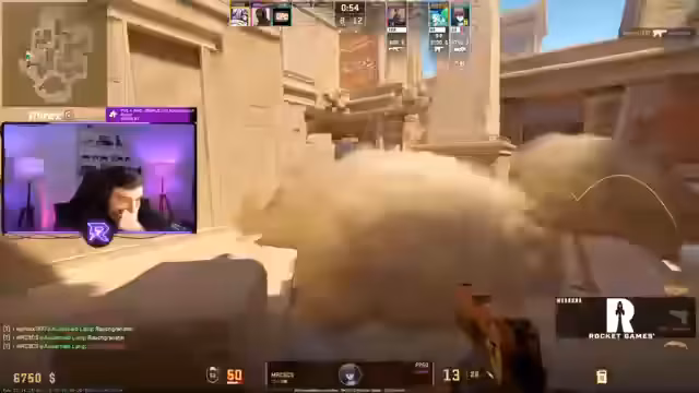 04:12:06Der Stream beginnt mit der Vorbereitung auf das erste Spiel. Nach einem kurzen Check der Teamzusammenstellung startet das Match mit den Spielern Phil und Matze, die B gehen, während der Streamer mit ZB spielt. Im T-Spawn wird die offensive Strategie besprochen, die einen B-Rush vorsieht. Das Team plant, mit einem Flash und aggressivem Push die Bomben zu platzieren. Die erste Runde verläuft unglücklich, da der Gegner einen Spieler hinter dem Rücken des Teams eliminiert, was zu einer schnellen Niederlage führt.