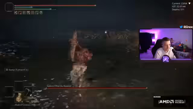 00:15:01Nach mehreren gescheiterten Versuchen gelingt es dem Streamer nach über viereinhalb Stunden das Nilpferd zu besiegen. Nach dem erfolgreichen Kampf bricht eine große Erleichterung über ihn herein. Er gibt zu, nach dem finalen Hammerschlag des Bosses fast 'angefangen zu heulen' zu haben. Seine Hände zittern noch vor Erleichterung und Nervosität. Er beschreibt diesen Sieg als einen großen persönlichen Meilenstein, nachdem er kurz davor war, den Stream abzubrechen, und sein 'Gamer-Stolz' ihn zum Durchgehalten hat.