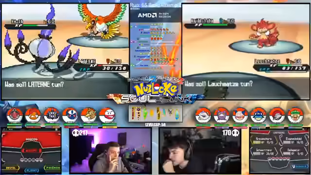 04:22:29Der Durchgang gegen den Top 4 Trainer Lauro beginnt. Nach einem ersten Kampf gegen Brutalanda, der sich als andere Art herausstellt, folgt der eigentliche Kampf. Der Gegner setzt ein starkes Ho-Oh mit einer gefährlichen Fähigkeit und zwei Omniboosts ein. Dem Team wird durch diese Kombination erheblicher Schaden zugefügt, und trotz strategischem Switching, z.B. zu Laterne mit der Feuerfänger-Fähigkeit, geht der Kampf verloren. Die KI des Gegners grecht zufällig und nutzt Attacken, die von der Logik der Fähigkeit eigentlich verboten sein sollten. Das Team ist dem Wipe nicht gewachsen, was die Streamer frustriert, aber sie werten es als eine Lernerfahrung.